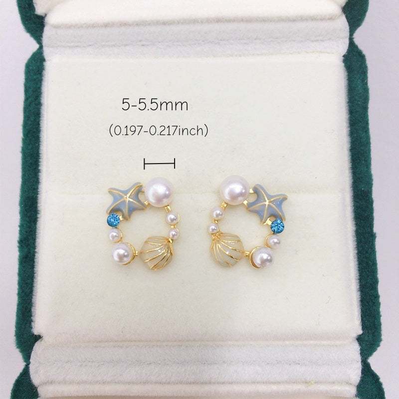 JRD Natural Freshwater Pearl Earrings Cute Starfish Shell 18K Gold-plated S925 Sterling Silver Ear Needle Stud
